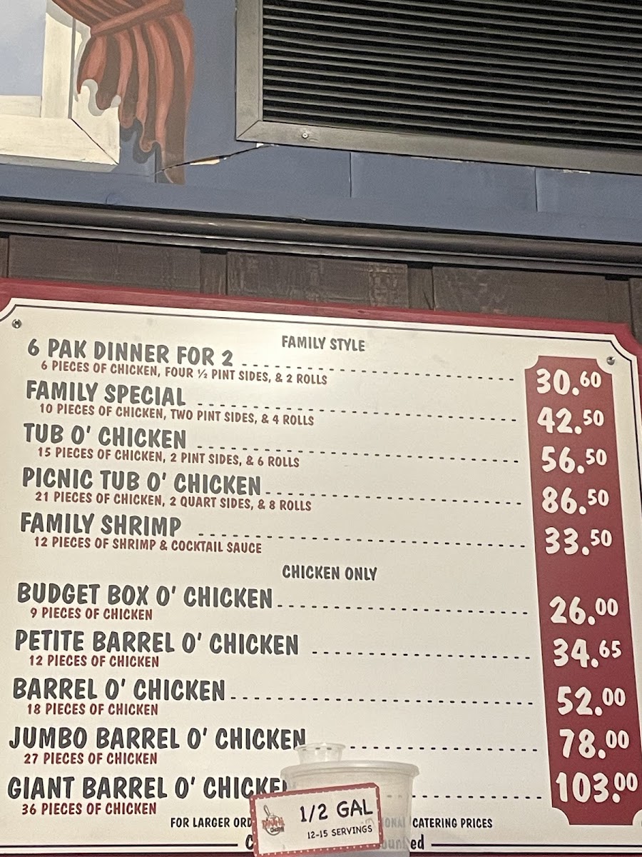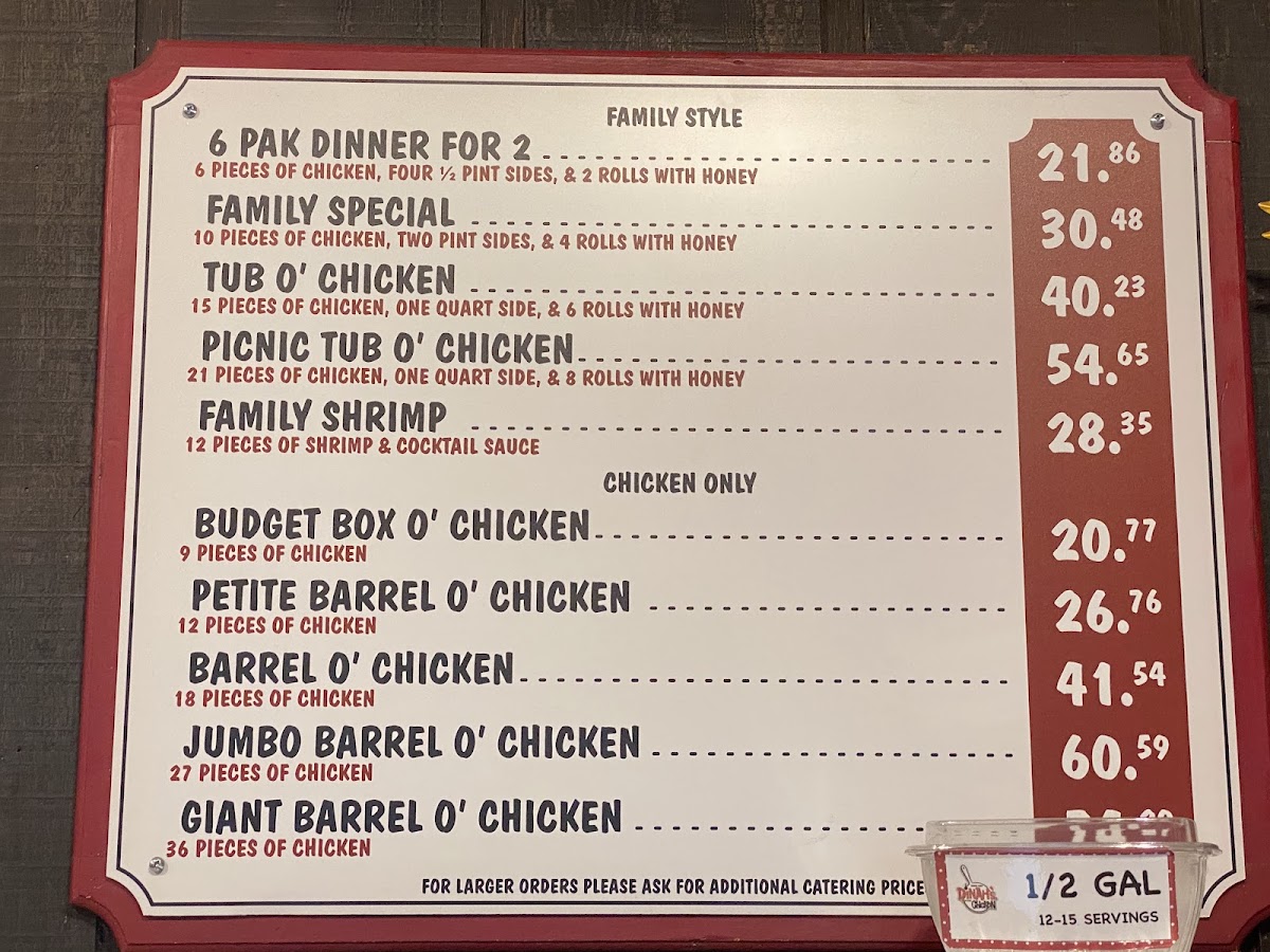 The menu is a delicious ode to fried chicken, offering a variety of options that fit any appetite. For families or those with an appetite to satisfy, the Family Meals section boasts enticing offerings like the 6 Pack Dinner for 2 featuring 6 pieces of crispy chicken, flavorful half-pint sides, and honey-drizzled rolls for just US$32.13. Planning a bigger gathering? The Picnic Tub O' Chicken serves up to 21 pieces of chicken along with hearty sides and rolls, perfect for sharing and priced at US$90.83.