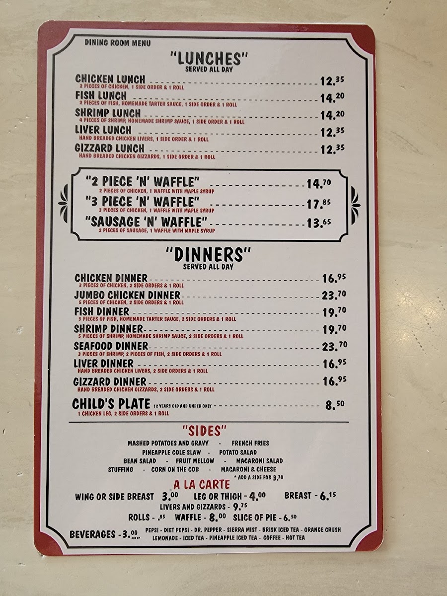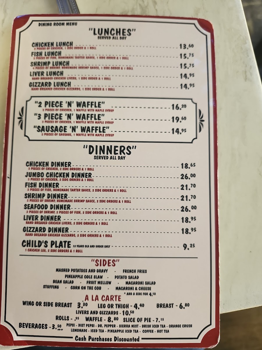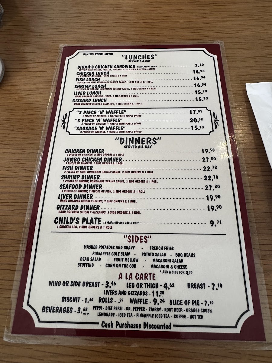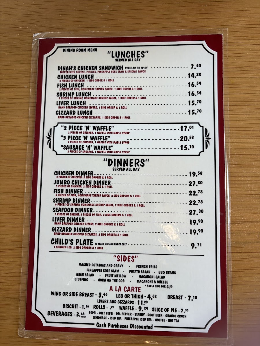 As soon as you step inside, the delightful aroma of perfectly fried chicken welcomes you, accompanied by a kitschy yet charming interior that evokes a sense of nostalgic comfort. The ambiance is perfect for a casual hangout with friends or a delightful family meal. Dinah's Chicken prides itself on serving meals made fresh to order, ensuring that every bite is met with satisfaction. Customers rave about the friendly service, making each visit feel special. Whether it’s your first time or you're a returning patron, you're treated like family here.